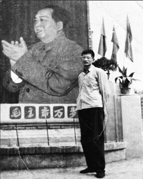 这幅老照片是上世纪60年代周建松在自己绘制的首幅毛主席像前的留影,那时,他才20岁左右。