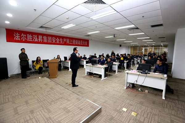 2017年3月14日,法尔胜泓昇集团安全生产网上学习动员会在集团公司多媒体教室召开。会议由法尔胜管理学院执行院长黄彦郡主持,江阴市安监局宣教中心副科长蔡军、安酷学院总经理孙健,以及集团各子集团、事业部的安全负责人、专兼职安全员等48人参加了会议。