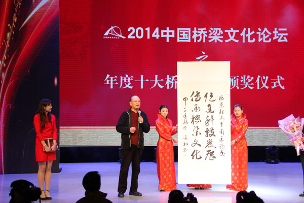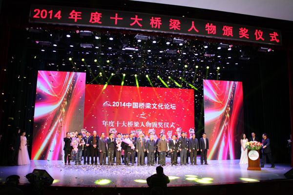 21日在法尔胜泓昇集团文化中心举行了“十大桥梁人物颁奖仪式”。这次的仪式全程由交通部原总工程师凤懋润主持,集团公司周建松主席、相关副总裁、各事业部部长等领导,缆索和东纲全体行政人员参与了颁奖仪式。在仪式上播放了十位桥梁人物的短片,他们的感人事迹让在场所有嘉宾都激动得热泪盈眶,潸然泪下。集团公司周建松主席代表泓昇集团向桥梁论坛赠送了题字:“促进科技发展,传承桥梁文化”。很多员工都觉得这是一次升入人心的文化熏陶。下午在泓昇苑酒店举行了“中国桥梁文化论坛”,并以此结束了整个活动。