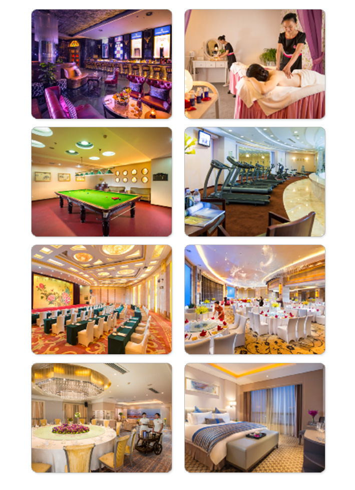 酒店现有客房290间/套,其中套房16间、标准客房273间、残疾人房1间,拥有床位数380个;设有接待包厢、宴会厅、会议中心等餐饮设施,总餐位数785个,提供各类宴会宴请、中餐零点、日式料理、咖啡厅、酒吧等餐饮服务及多种形式的会议服务,并辅以健身房、游泳池、棋牌室、台球室、沙壶球、乒乓球、休闲、KTV、美容水疗、美发中心、商场等设施。