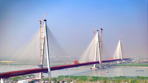 2025年4月17日,世界最大跨度三塔斜拉桥—巢马铁路马鞍山长江公铁大桥顺利合龙,大桥实现双主跨(两处合拢口)“毫米级”精准同步合龙,是世界桥梁史上又一里程碑,为巢马铁路早日通车奠定坚实基础。