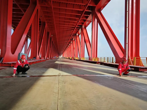 巢马城际铁路马鞍山长江公铁大桥自开工建设以来,经全体建设者们1500多个日夜的奋战成功合龙。江苏法尔胜材料分析测试有限公司作为大桥的第三方检测单位,自2021年签订合同至今,秉承“严格、严密、科学、公正”的服务宗旨,科学配置各项资源,规范有序、科学公正的开展各项检测和相关管理工作,为巢马大桥合拢奠定坚实地基础。
