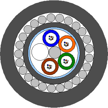 ● 单细圆钢丝铠装结构,增加光缆抗压、抗拉、防弹性能;