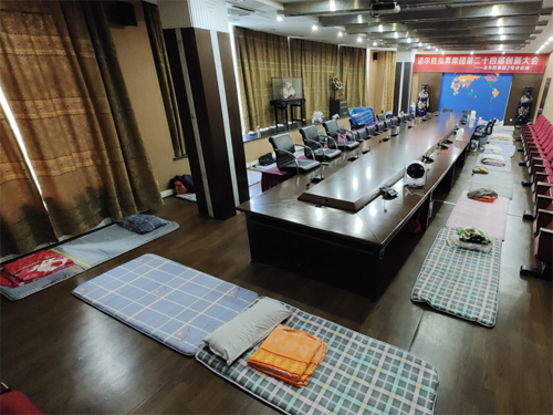 根据政府防疫要求,光子公司各条线领导通过召开紧急会议,评估了生产、材料供应、订单交付等情况,决定实行闭环生产。首先进行了人员排查,之后根据工作需求安排76 名驻厂人员,在一天时间内完成了生活物资和防疫物资紧急采购及配发,保证生产运行人员正常到岗,临时将部分会议室、空办公室调整为员工休息区,配发睡袋、枕头等生活必须品,最大限度地为驻厂人员营造安全、舒适的工作生活环境。每日午餐和晚餐由酒店以盒饭形式提供,早餐由专人外出采购,夜宵发放方便面等物资。驻厂期间建立微信交流群及时沟通,领导组成特别指挥小组定期巡查,保证公司在动态环境下的安全生产,人员的稳定。