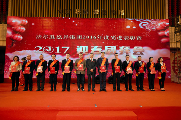 会后,全体与会人员在总部大楼综合大厅参加了集团2016年度先进表彰暨2017迎春团拜会,周江董事长分别为获得“优秀营销员”及“工人先锋岗”的员工颁发了获奖证书。随后,集团管理部、各子集团、事业部管理团队以丰富多彩的节目形式向大家拜年。