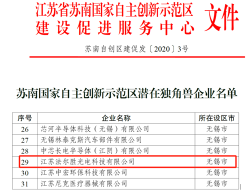 法尔胜光电科技实力入选潜在独角兽企业名单