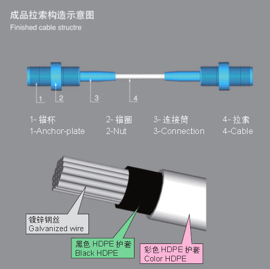 ● 率先采用双腔共挤技术,可同时在缆索外层挤覆双层HDPE;