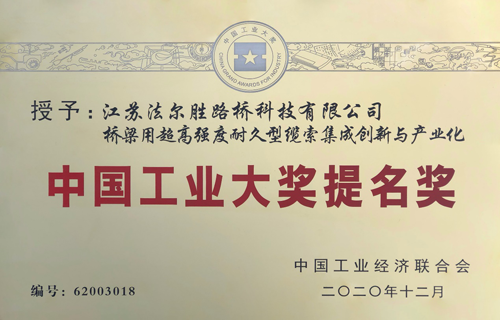 该提名大奖花落法尔胜,充分肯定了公司在创新驱动、转型升级、经济效益、节能减排等方面做出的贡献。值得一提的是,在2016年中国工业大奖发布会上,法尔胜泓昇集团荣获第四届“中国工业大奖”,本次获奖是法尔胜四年内第二次在中国工业大奖中斩获荣誉。