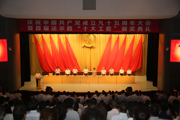 热烈庆祝中国共产党成立九十五周年大会暨首届法尔胜“十大工匠”颁奖典礼