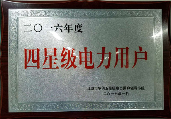 集团下属4家子公司获得了“星级电力用户”称号:江阴法尔胜钢铁制品有限公司荣获“五星级电力用户”称号;江阴法尔胜线材制品有限公司、江阴法尔胜泓昇不锈钢制品有限公司、江苏法尔胜光子有限公司荣获“四星级电力用户”称号。