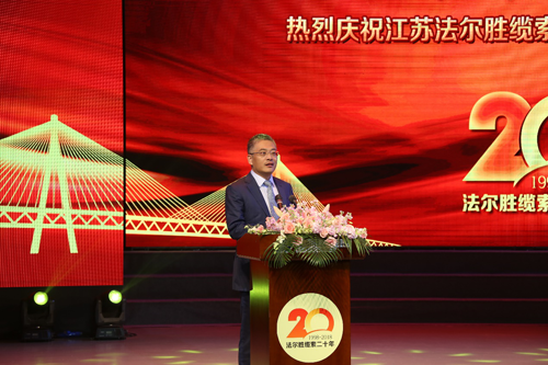 随后,江苏省交通运输厅原厅长游庆仲致辞表示,作为一个建桥人,见证了法尔胜缆索公司20年的发展,在今天这个喜庆的日子他倍感激动,他代表交通系统祝愿法尔胜再创辉煌历史。交通运输部原总工程师凤懋润致辞,他对法尔胜缆索成为行业排头兵、走向世界的骄人成果表示祝贺,同时鼓舞更多的路桥人再攀技术高峰,为国争光。