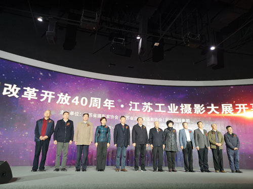 11月19日,由江苏省摄影家协会、江苏省企业家摄影协会、苏宁控股集团联合主办的“庆祝改革开放四十周年江苏工业摄影大展”在南京苏宁易购展厅开幕。江苏省人大原副主任丁解民,江苏省政协原副主席李仁、徐鸣,中国摄影家协会副主席陈小波,江苏省宣传部副部长徐宁,江苏省工商联副主席陈京,江苏省摄影家协会主席沈遥等领导出席了开幕式。