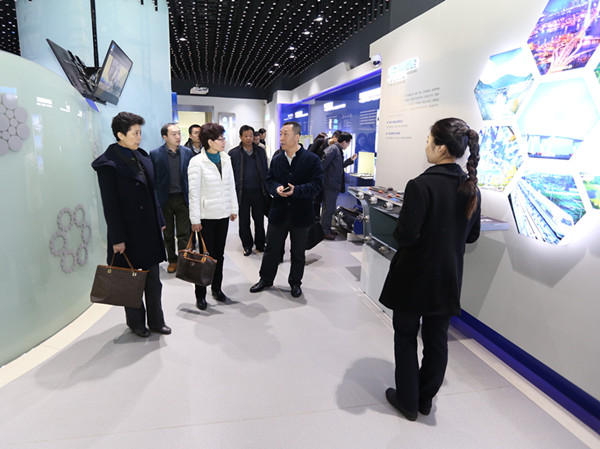 调研组一行在刘印副书记的陪同下,观看了企业宣传片并参观了集团公司的产品展厅,详细了解了企业产品工艺和外贸发展情况。参观结束后,调研组一行在综合商务楼会议室进行了深入交流,刘印副书记汇报了法尔胜的现状和外贸情况,详细介绍了法尔胜坚持科技创新以及走国际化道路的发展方向,提出了当前形势下面临的外贸挑战。刘印副书记建议加强对民营企业信息渠道透明化,建立公开的平台渠道。