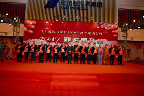 会后,全体与会人员在总部大楼综合大厅参加了集团2016年度先进表彰暨2017迎春团拜会,周江董事长分别为获得“优秀营销员”及“工人先锋岗”的员工颁发了获奖证书。随后,集团管理部、各子集团、事业部管理团队以丰富多彩的节目形式向大家拜年。