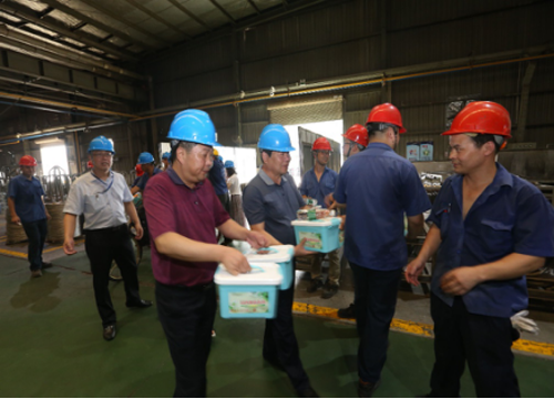各子集团、事业部根据集团高温送清凉的统一部署及各企业的实际情况,纷纷采购经济适用的夏令用品并及时发放到每位职工的手中,有的单位党群组织还专门带头到生产一线和相关岗位进行慰问。